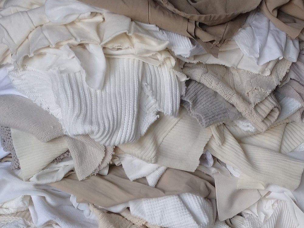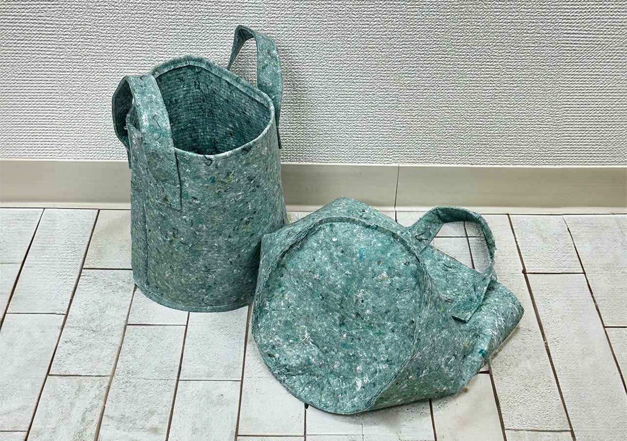 事前にホワイト、アイボリー、ペールブラウンなどのカラー指定を行い、バランスをみながら選別された古繊維を反毛して仕上げた今回の新製品。世の中に流通する衣料品や繊維製品は基本的に白、黒、グレーの割合が高くなっており、これらの色味を個別に使い分けて見た目から汎用性を高めることで、これまでよりも活用シーンの可能性が広がり、結果的に繊維リサイクルが促進されると考えます。