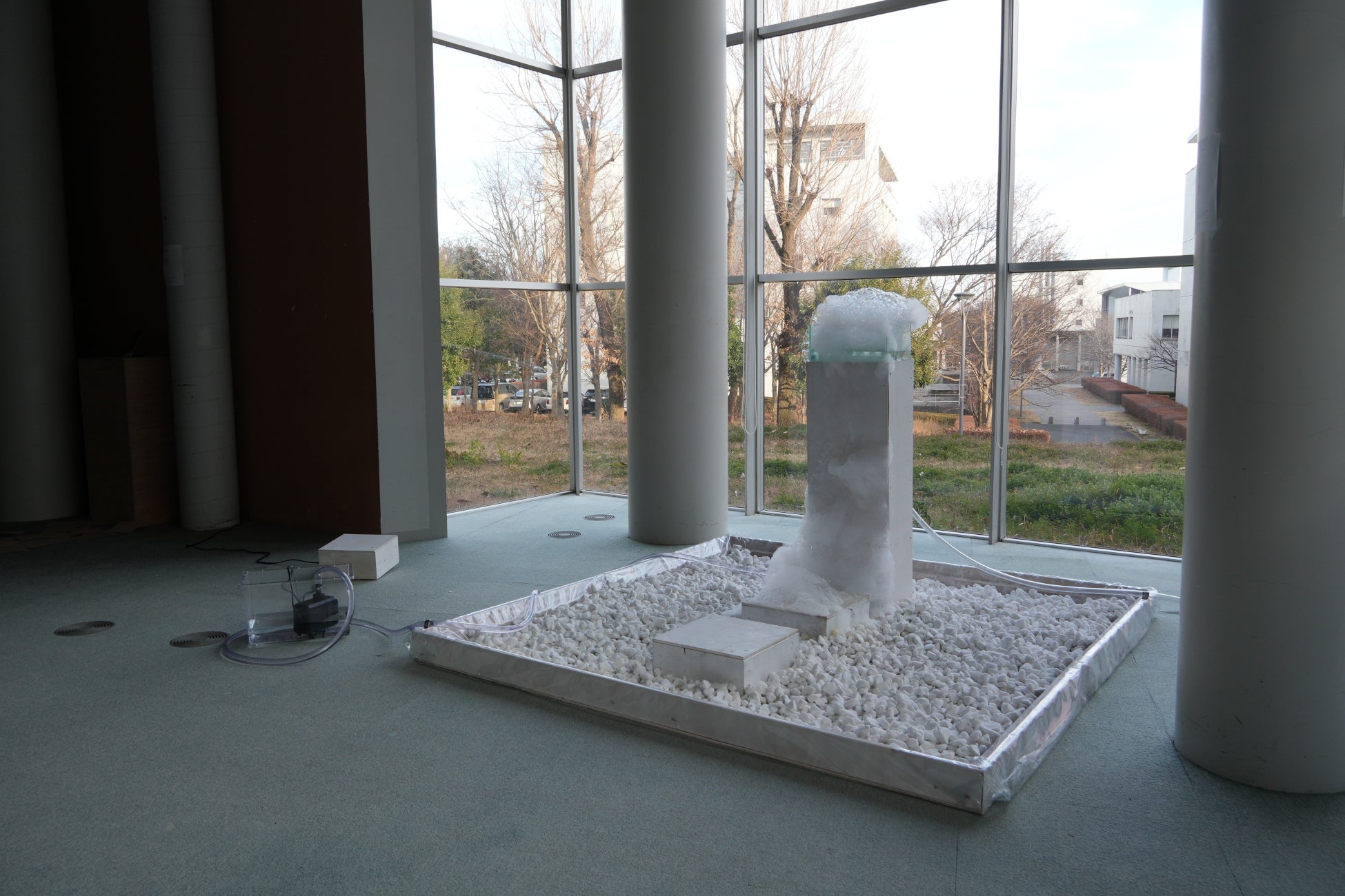 本作では、物理的にも心の上でも遠ざかった死者の記憶を、泡の呼吸によって浮かび上がらせた作品。Arduinoを用い、呼吸のリズムに合わせて泡が生まれるようプログラムされている。泡はかたちを変えながら現れては消え、留まることがない。死別を経験した作者自身のみならず、誰もが自らのタイミングで「さようなら」と告げられるように。