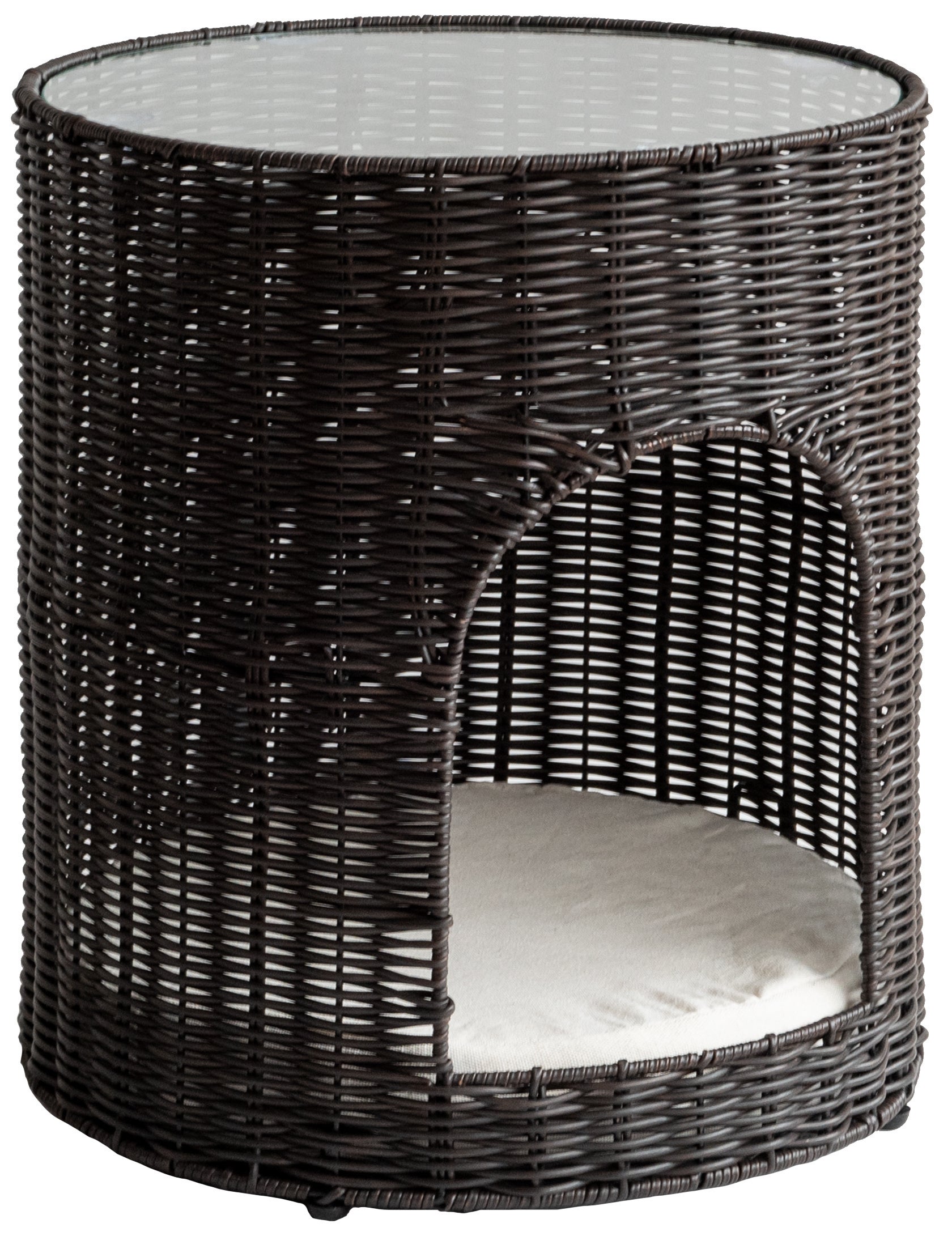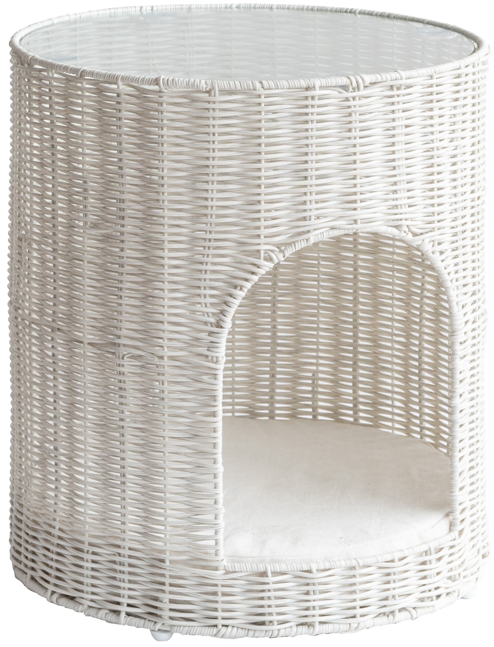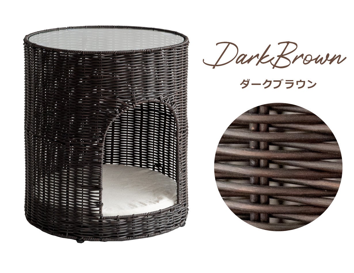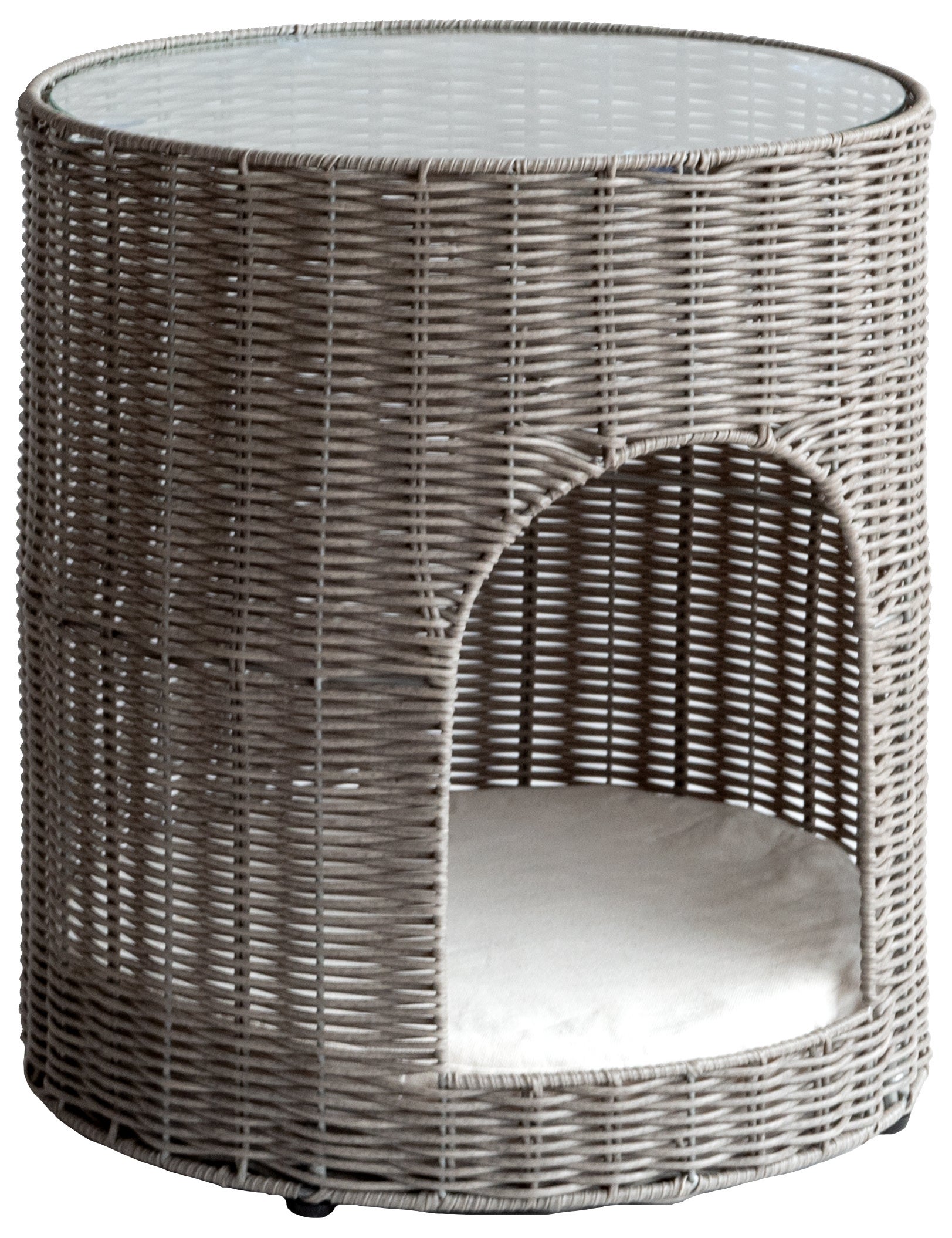 サイドテーブルとしても使えるガラス天板の樹脂製ラタン猫ちぐらをMakuakeにて先行販売開始