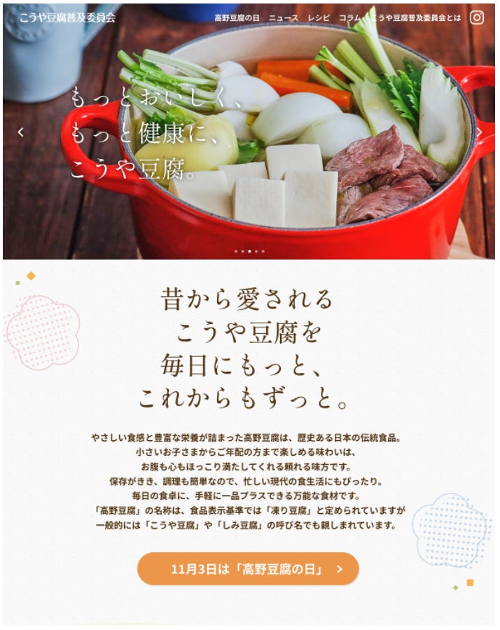 もっとおいしく、もっと健康に。健康と美味しさがギュッと詰まった「こうや豆腐」のサイトがリニューアル!