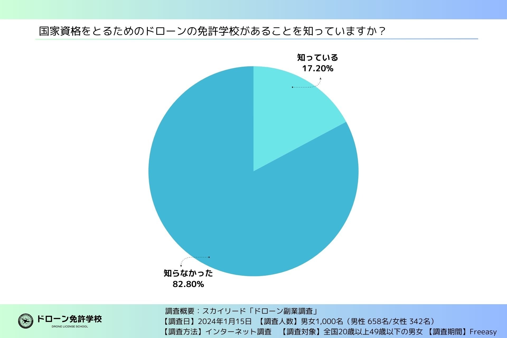 ■ 約8割(82.8%)以上が、国家資格をとるためのドローン免許学校の存在を知らない