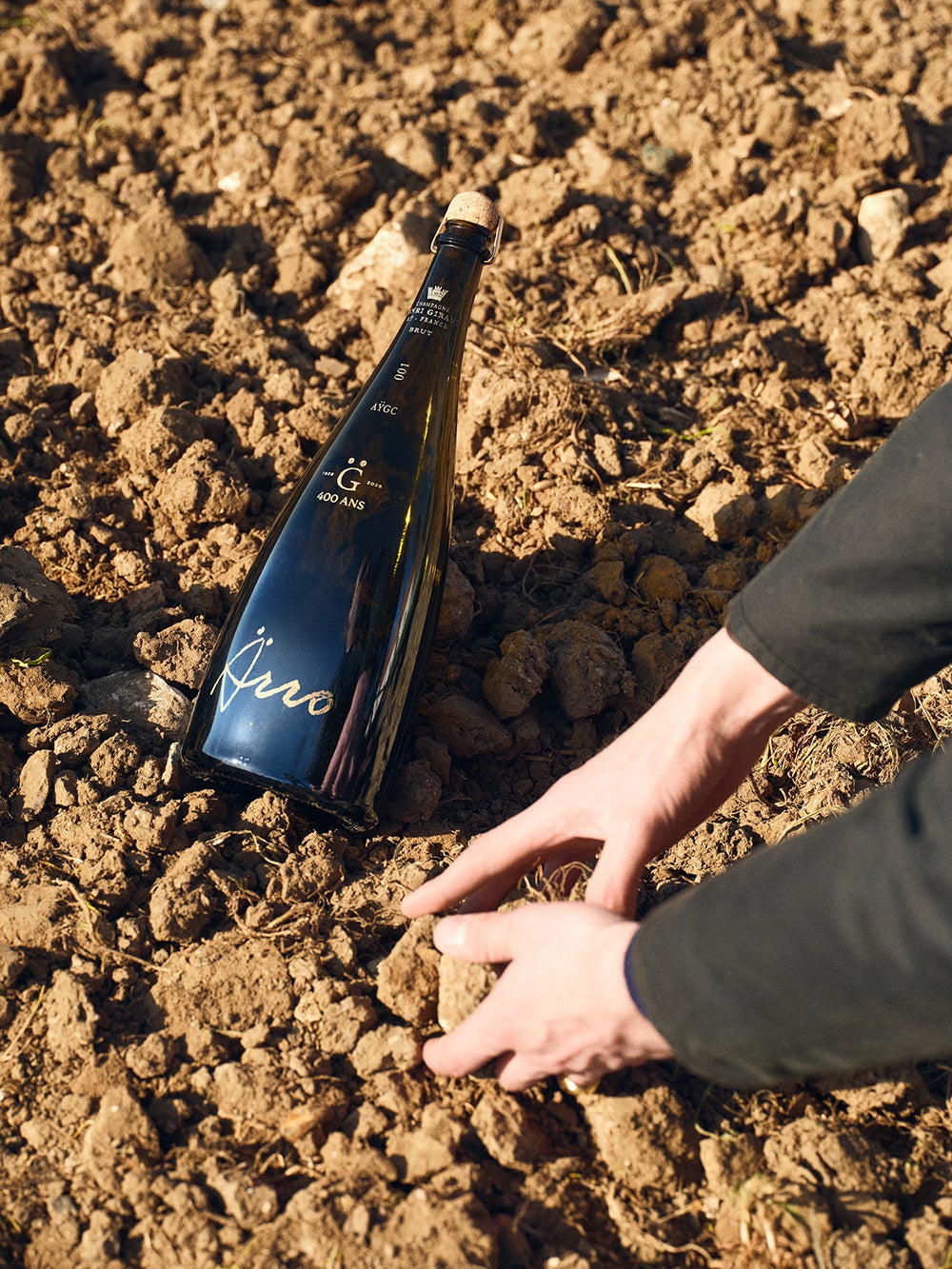 「Arro」はラテン語で「畑を耕す」という意味を持ち、土地、ブドウの木、そしてワインの新たな活用方法を模索し、全力を尽くしてきた先代の度重なる努力と苦悩を表し、また未来の世代に受け継がれる理念を表した言葉です。イソップ物語で有名なジャン ド ラ フォンテーヌの寓話で伝えらている、死期が迫っていることを察した裕福な農夫が子供たちを呼び寄せ「遺産を売ってはいけない。そこには宝が隠されている。どこにあるのかはわからないが、少しの勇気があれば見つけられる。畑をかき回して、掘って、また掘って、鋤で掘って、手つかずのままの場所はひとつも残さないで」と言い残し、その後お金は見つからなかったが、畑はより多くの収入をもたらした。この逸話のように、アンリ・ジローのセラーには、素晴らしいヴィンテージと苦い失敗の両方から成る、まさに宝の山が築かれてきました。メゾンの歴史における重要な瞬間を祝うために、希少な限定版が造られる運びとなりました。