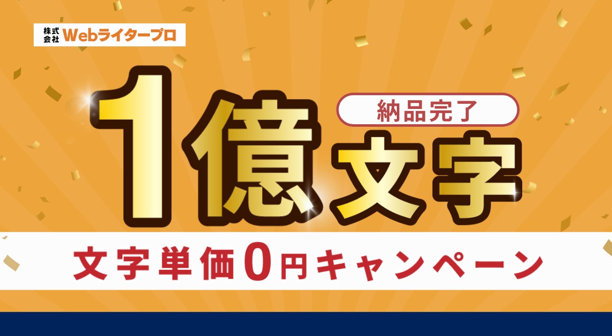 精鋭Webライター集団「Webライタープロ」が納品文字数「1億文字」を突破!文字単価0円キャンペーン」を5社限定スタート