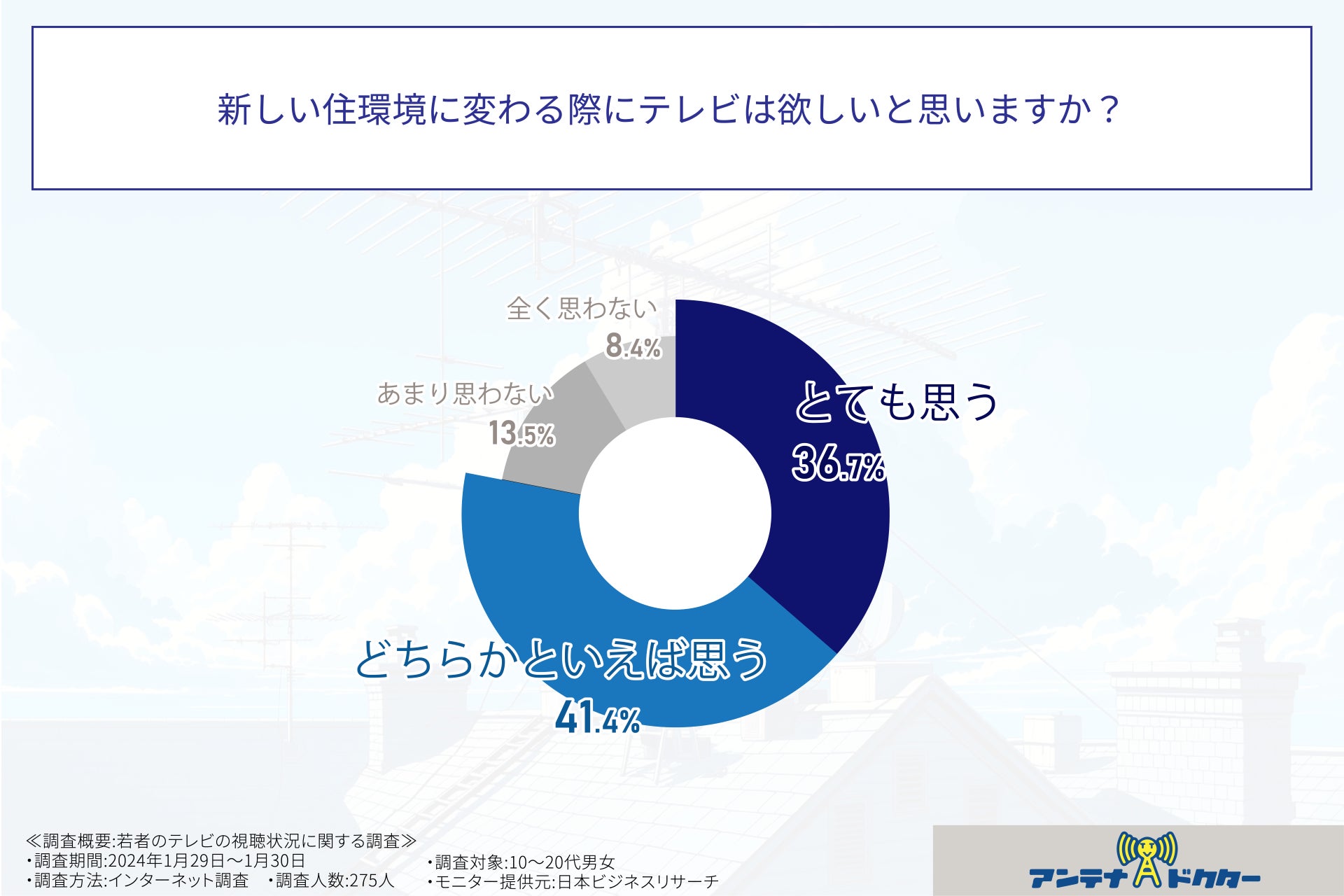 また、引っ越しなど新しい環境に変わった場合でも、8割近くが引き続きテレビを利用したいと回答しています。