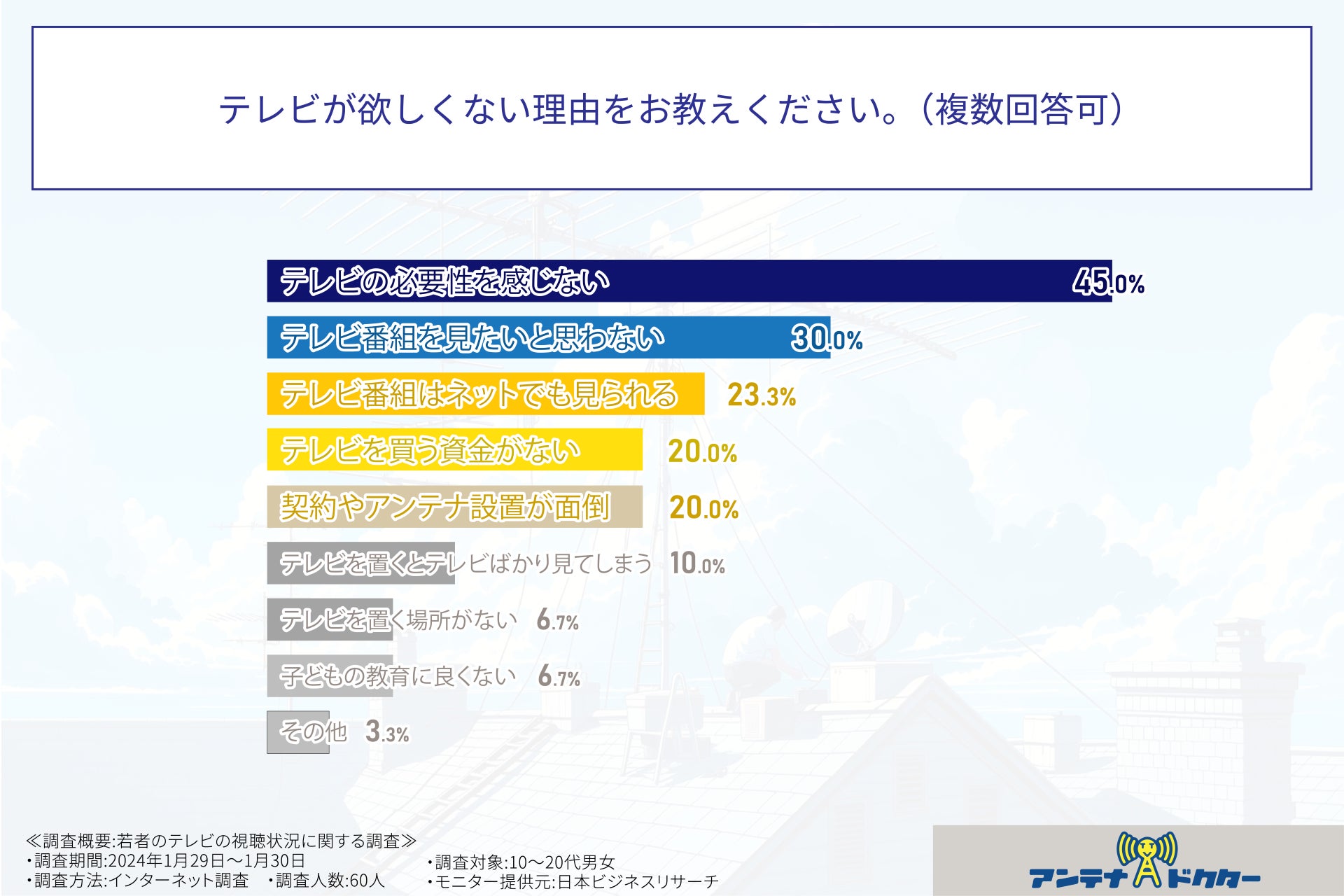 調査の結果、テレビをほしいと思っていない人の半数近くがテレビの必要性を感じていないことが分かりました。