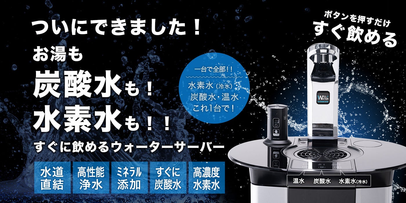 株式会社WILL JAPANは、2024年2月より「水道直結式 炭酸水・冷水・温水ウォーターサーバー」の販売を開始。そのハイグレードラインとして今年の夏に日本初(※1)の「水道直結式 水素⽔・炭酸⽔・温水ウォーターサーバー」の発売を予定しています。