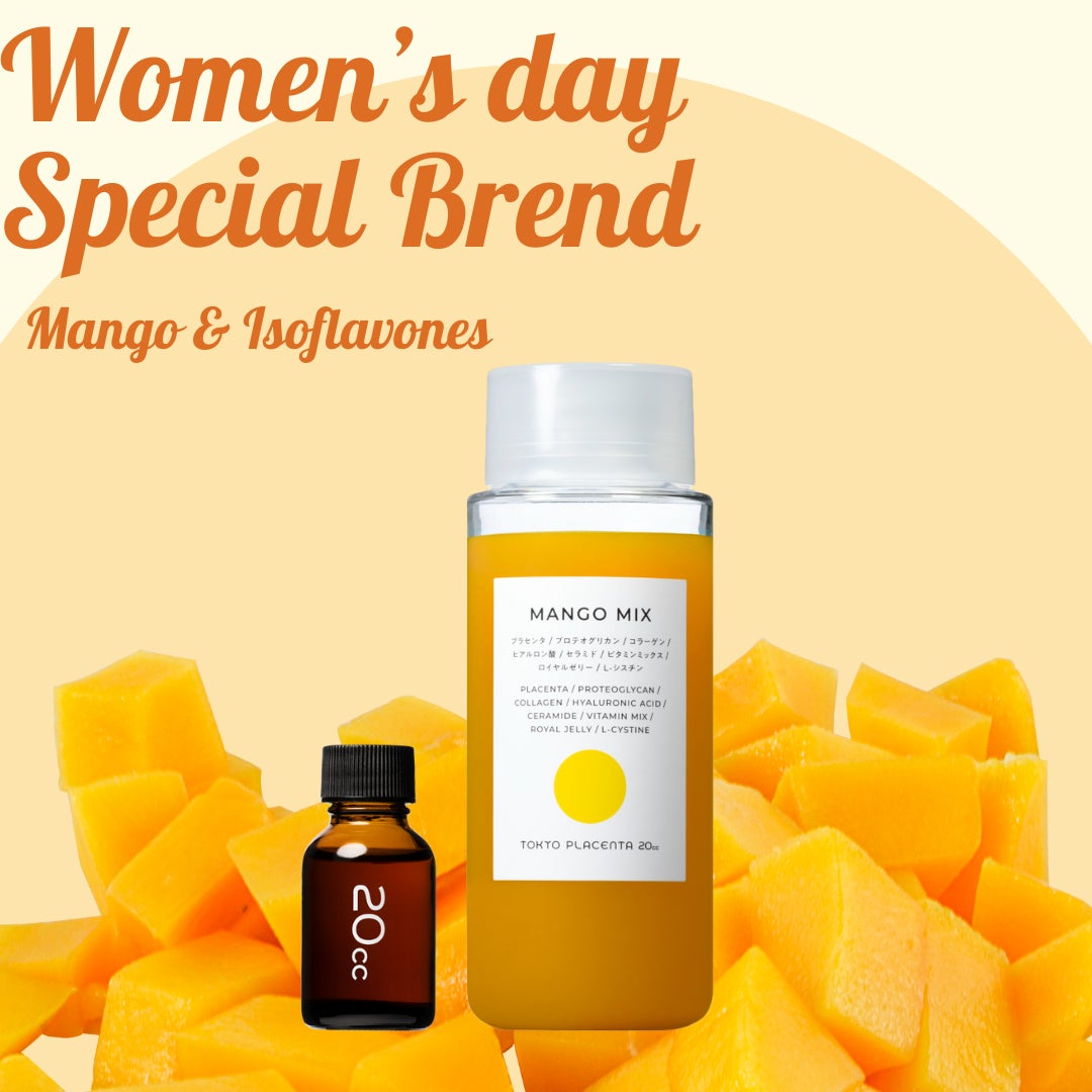 TOKYO PLACENTA 20ccが贈る女性のためのスペシャルブレンド「イソフラボン×マンゴー」を是非お試しください。