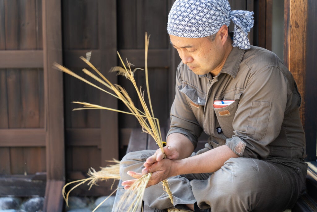 そこから米俵作りを始めましたが、わら細工文化の衰退も同時に実感し「どうにかしなければ」と強く決意し「南信州⽶俵保存会」(現在のわらむの屋号)を始めました。酒井氏は⽇夜「わらにもすがる想い」でわら細⼯に取り組んでたそうです。
