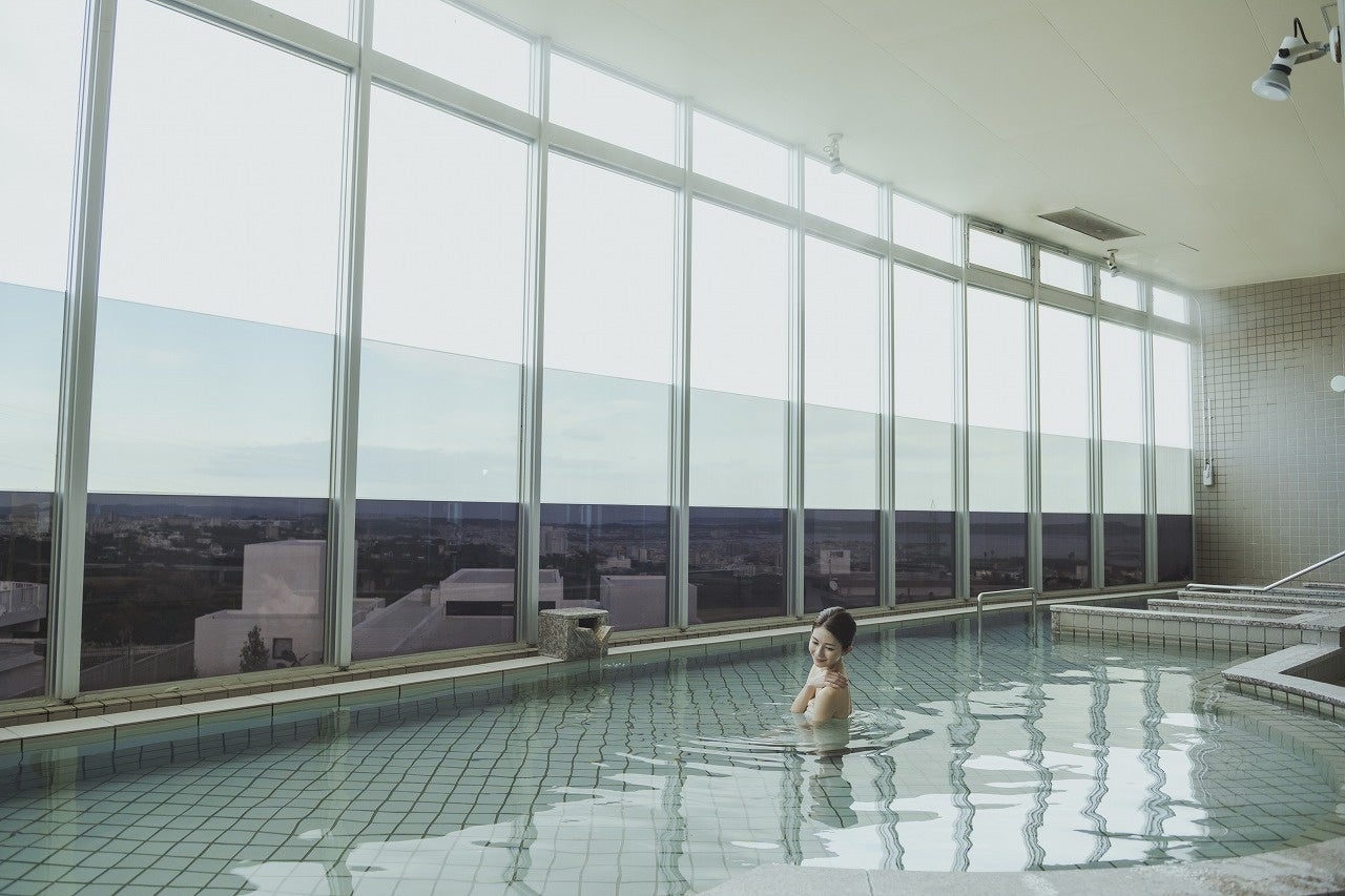 沖縄といえば海を連想される方も多いかもしれませんが、当施設は北中城村の丘の上に位置し、東シナ海と太平洋を一望できる特別なロケーションにあります。街と海を見渡す絶景に包まれながら、心身を整えるウェルネスリトリートをお楽しみいただけます。