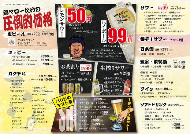 【北海道二店舗目】全国70店舗⽬!各地で行列のレモンサワー50円を筆頭に激安ドリンクがウリの居酒屋、『それゆけ鶏ヤロー 琴似店』2024年10⽉10⽇(木) グランドオープン