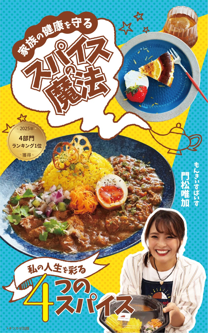 トキツカゼ出版株式会社(本社:大阪府大阪市、代表取締役:中島琴美)は、健康スパイスカレー店「もんきぃすぱいす」オーナーの門松唯加(かどまつ ゆいか:大阪府枚方市)による最新著書『\家族の健康を守る/スパイスの魔法: ~私の人生を彩る4つのスパイス~』を2025年12⽉29⽇に発売開始し、 この度、Amazon.co.jpのランキングにおいて4部⾨で1位を獲得したことをお知らせいたします。(2025年12⽉30⽇及び2026年1月1日時点⾃社調べ)