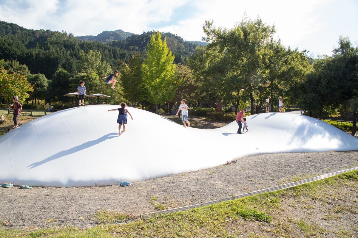 全国でも珍しい遊具「ふわふわドーム」が人気。子ども連れの家族で賑わっています。