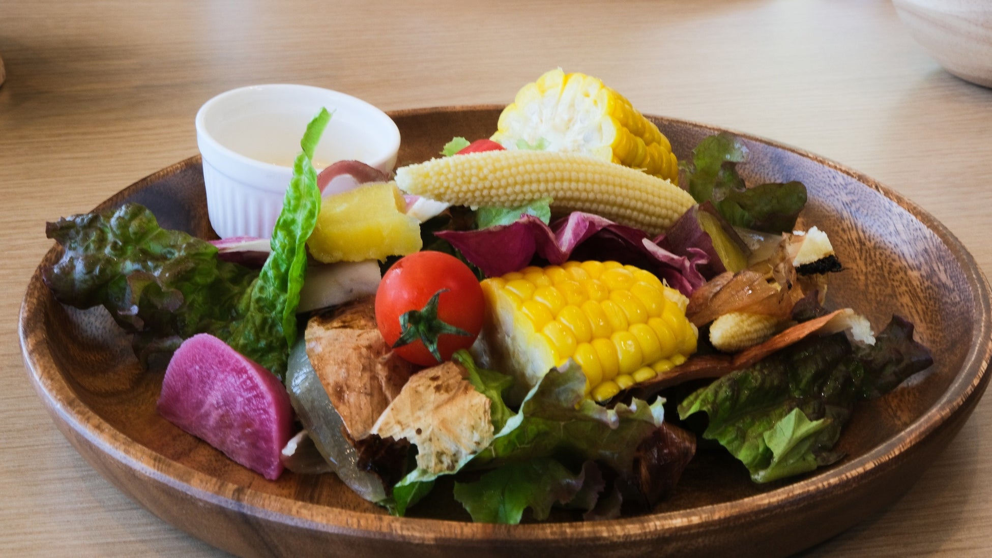 自社栽培の新鮮野菜や果物、お米(武川米)、県産ブランド肉を使用したお料理をご用意しています。また、農業法人ならではの新鮮な野菜や果物を使ったデザートもお楽しみいただけます。