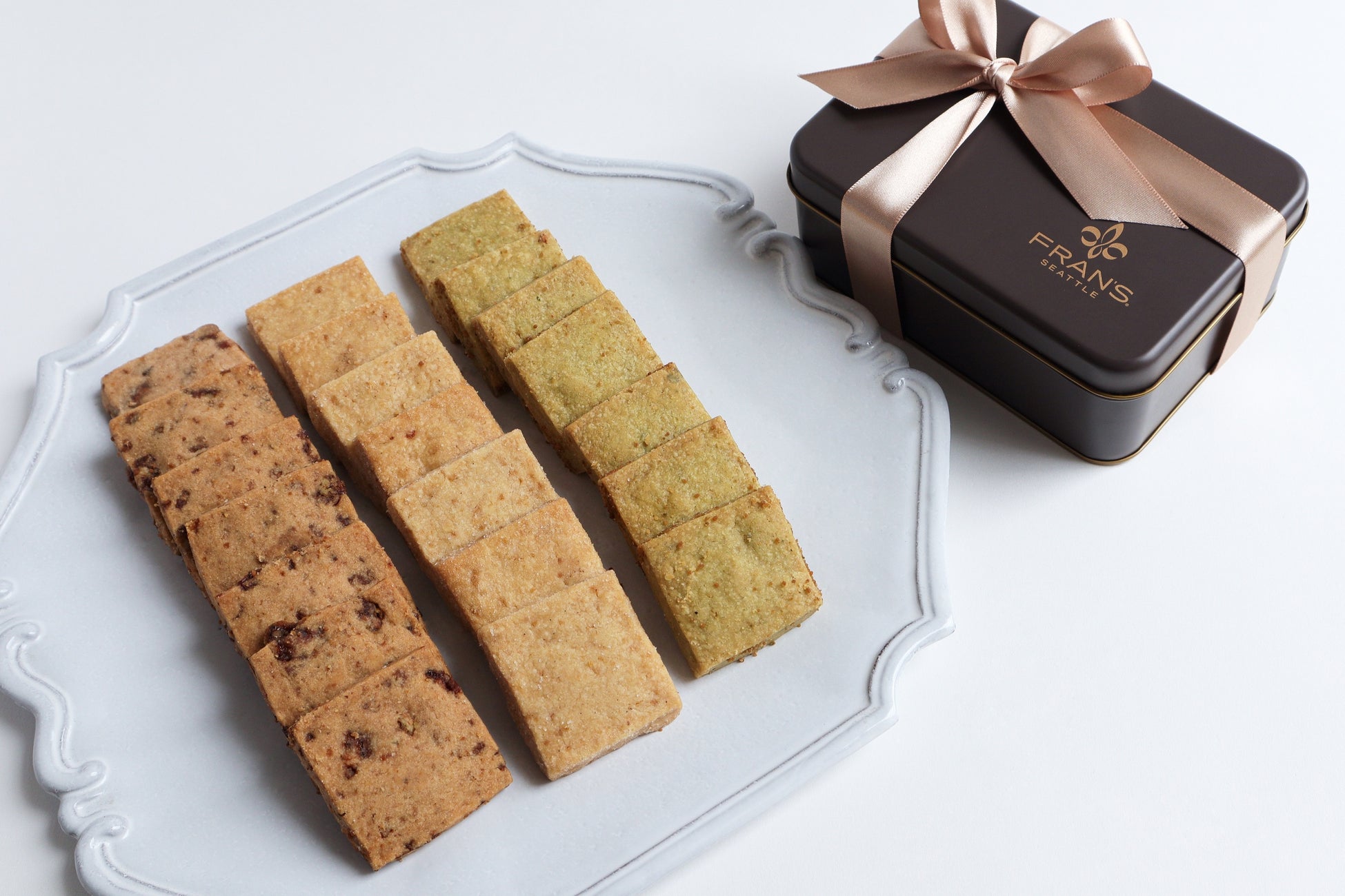 シグネチャーカラーが上品に映えるデザイン缶に、“サクッ”とした食感のサブレクッキー3種をたっぷりと詰め合わせました。