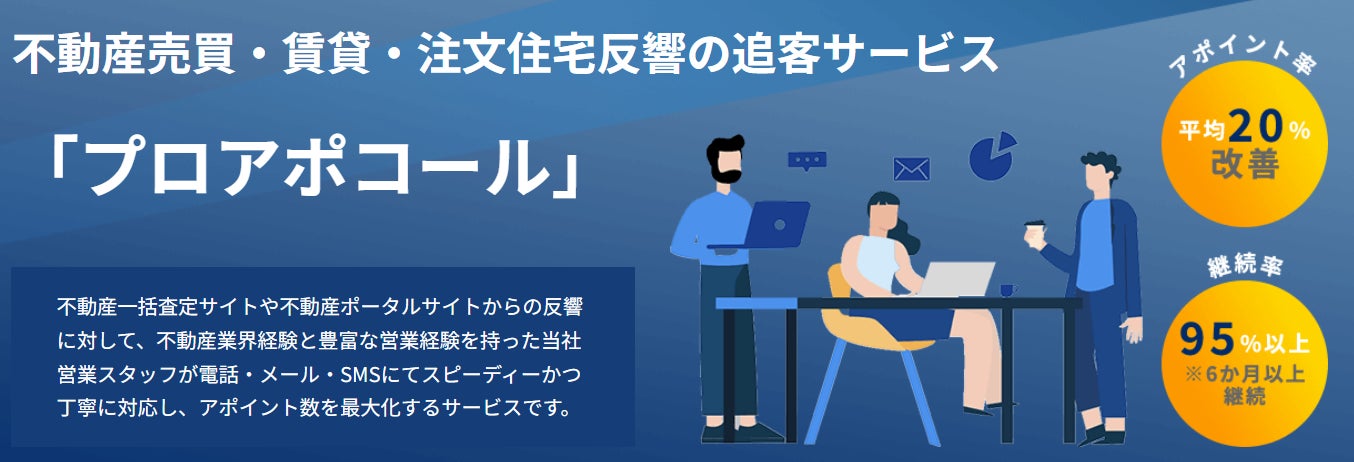プロセルトラクションが提供する「プロアポコール」は、不動産一括査定サイトや不動産ポータルサイトからの反響に対して、知見を持った営業スタッフがマルチチャネルで