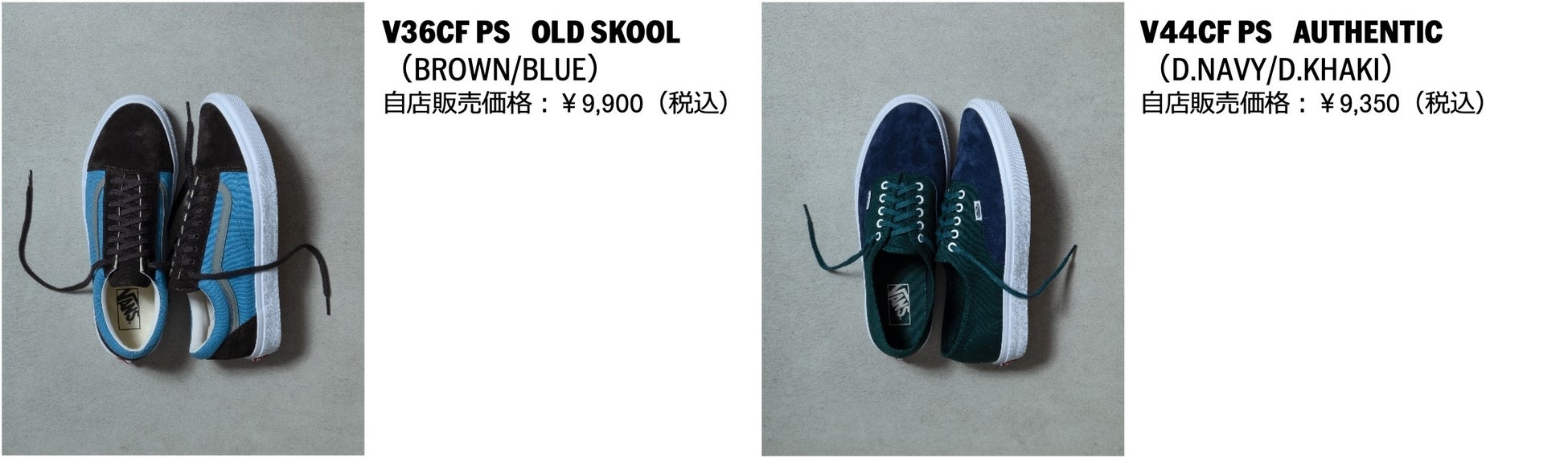 「PROPS STORE」はスタッフ自らがアメリカに出向いて目利きしたアイテムが店頭に並び、世代や性別を問わず愛される原宿のインポートショップ です。鮮やかなトーンのブルーのキャンバスにシックなブラウンのスエードを合わせたOLD SKOOL(オールドスクール)と、グリーンキャンバス&ネイビースエードのAUTHENTIC(オーセンティック)の2モデルがラインアップ。