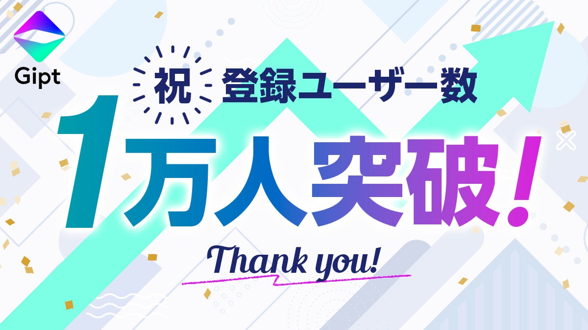 株式会社Gipt(代表取締役:木下恭佑、本社:東京都中央区、以下「当社」)は、当社が運営するクリエイター向けのギフトプラットフォーム「Gipt(ジプト)」の登録ユーザー数が2024年5月時点で1万人を突破したことをお知らせいたします。