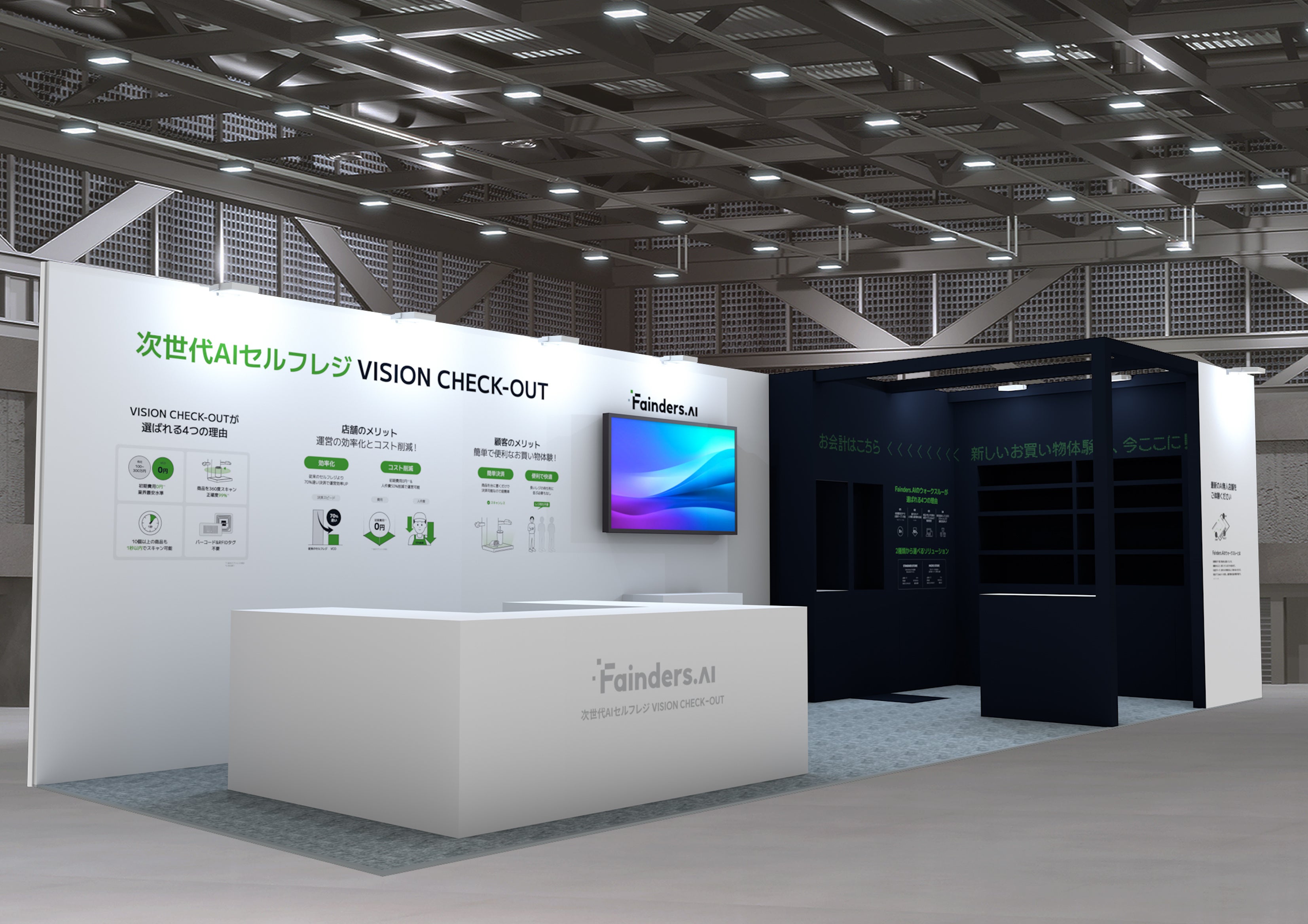 今回の展示会では、次世代AIセルフレジ「VISION CHECK-OUT」や、AI無人店舗ソリューション「WALK THROUGH」の実演・体験ができるブースを用意しています。