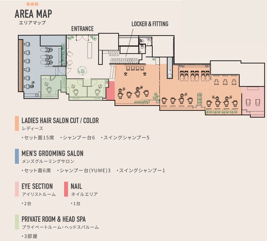 ヘアカラー専門のカラーリストはじめ、ネイル、ヘッドスパ、眉毛・まつげなど肩から上のビューティーメニューがワンストップで揃う都会のウェルネスサロン。メンズ専用美容室メンズグルーミングサロンも併設しています。