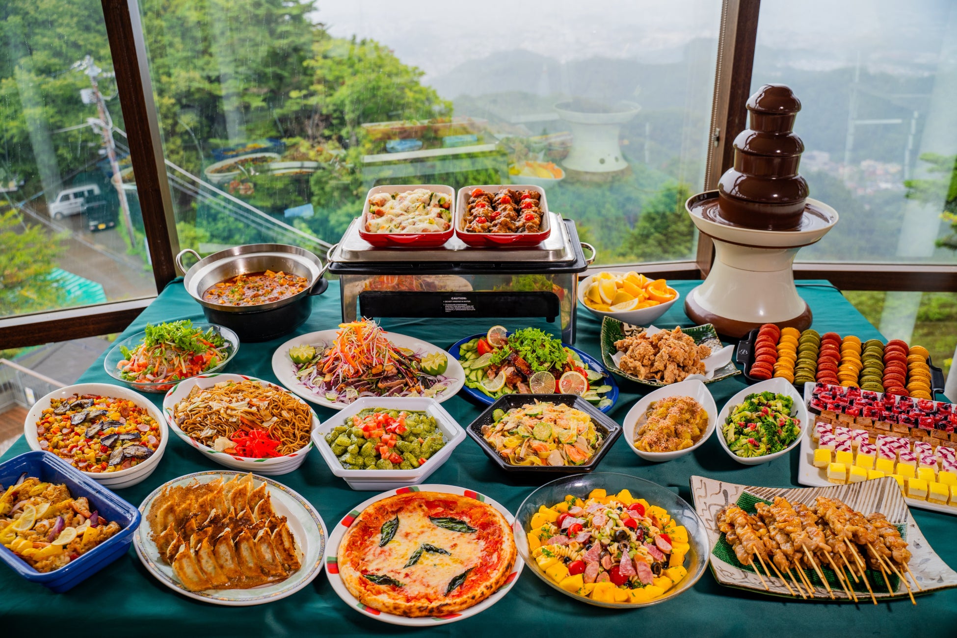 12月15日まで開催中の「秋のビアガーデン」では、秋の食材を使用したお料理を含む30種類以上のバイキングを始め、去年好評をいただいた鍋バイキングなど、絶景と共にお楽しみいただけます。