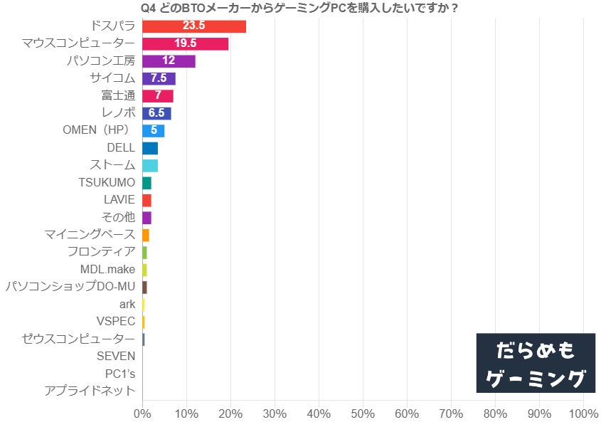 調査4:どのBTOメーカーからゲーミングPCを購入したいですか?