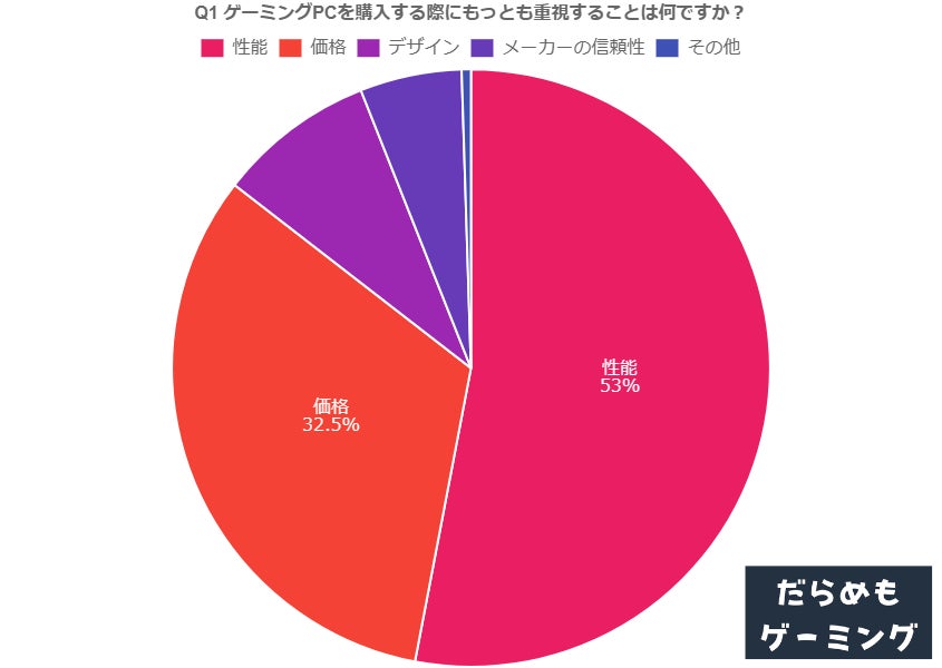 調査1:ゲーミングPCを購入する際にもっとも重視することは何ですか?