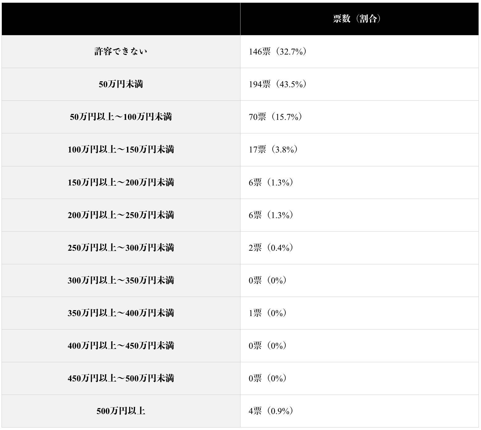 年収が下がることが許容できない人の割合は3割程度、許容できても50万円までが多数