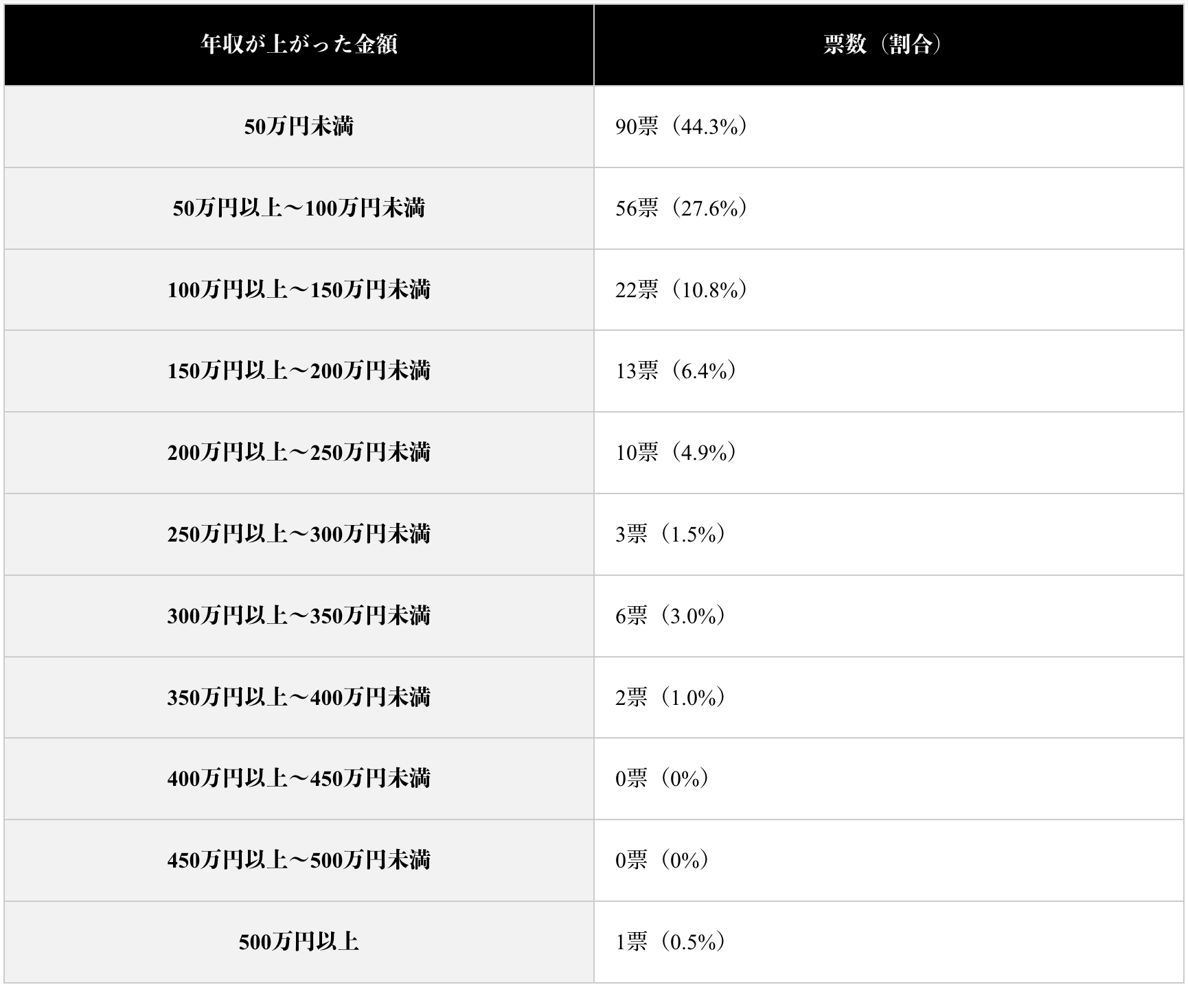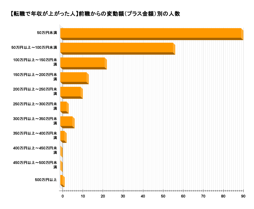 転職で年収が上がった人の変動額別の人数を調査したところ、以下の結果となりました。
