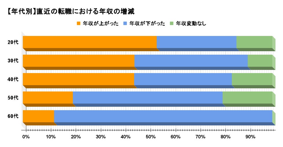 【年代別】転職で年収が上がった人・下がった人の割合