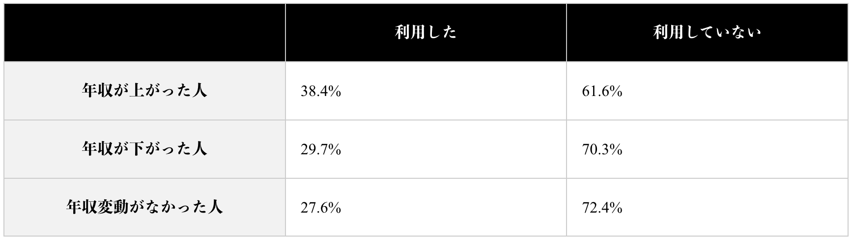 年収が下がった人より年収が上がった人の方が転職エージェントの利用率が高い