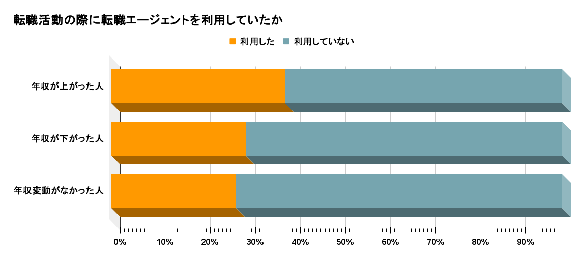 年収が下がった人と比較し、年収が上がった人の方が転職エージェントの利用率が高い結果になりました。