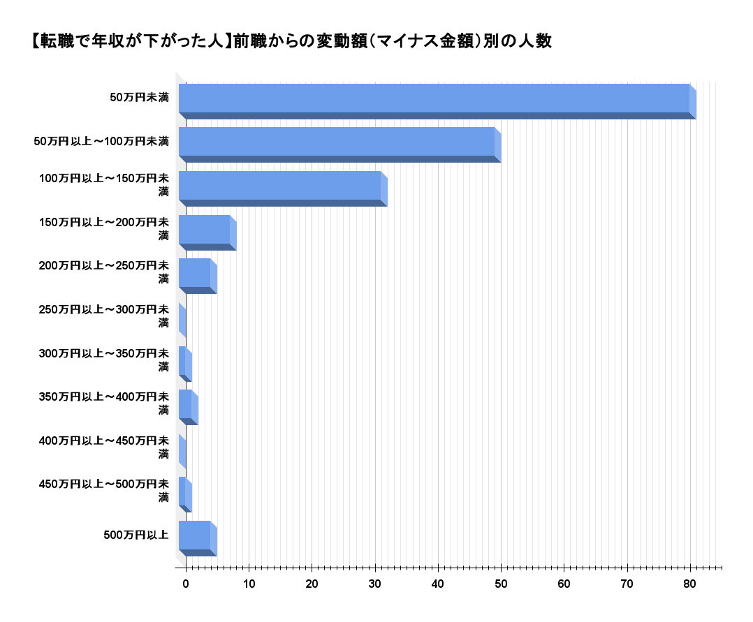 転職で年収が下がった人の変動額別の人数を調査したところ、以下の結果となりました。