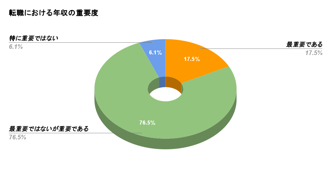 「最重要ではないが重要である」と回答した人は76.5%を占めており、年収以外の理由で転職する人も、年収の重要性を感じている人が多いことが分かります。
