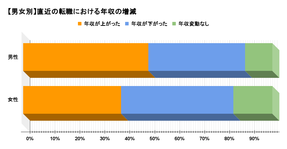 【男女別】転職で年収が上がった人・下がった人の割合