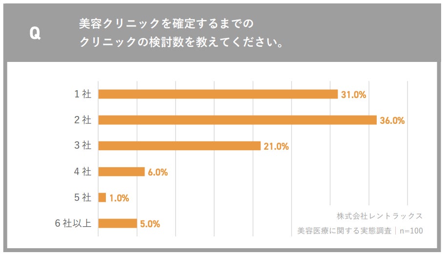 Q.美容クリニックを確定するまでのクリニックの検討数を教えてください。(n=100)