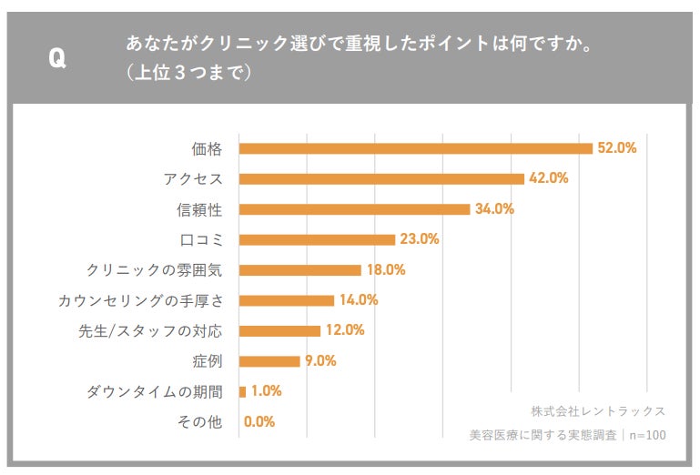 Q.あなたがクリニック選びで重視したポイントは何ですか。(上位3つまで) (n=100)