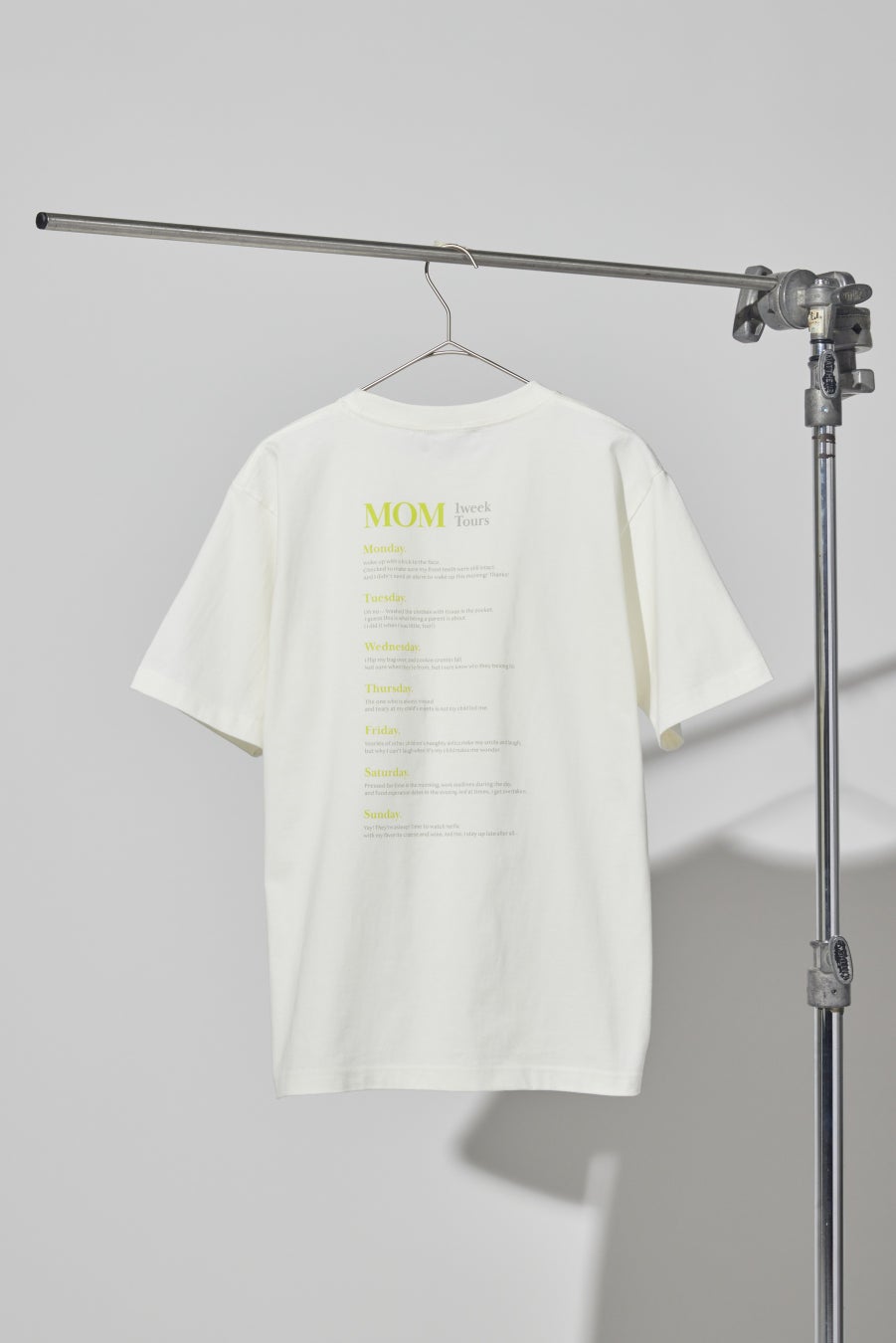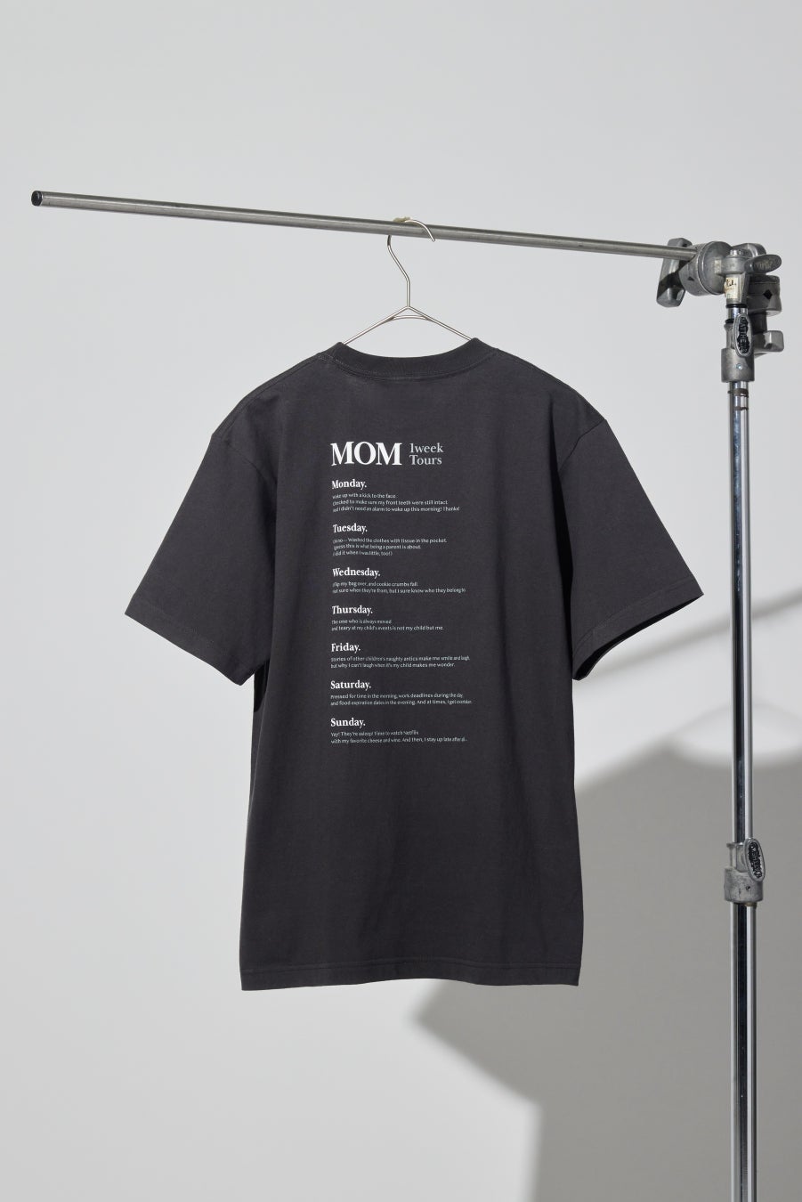 バックプリントにはMOMのとある1週間を英文で表現しました。