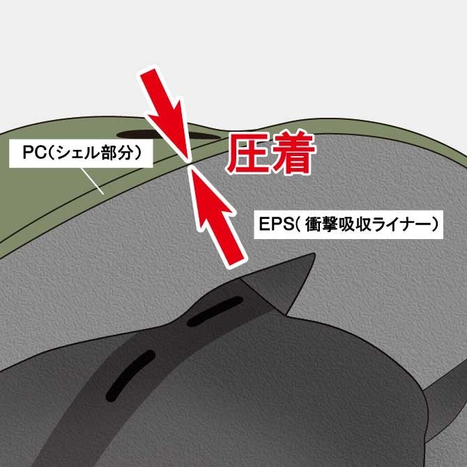 外側のソフトシェルと衝撃吸収ライナーを一体成型したポリカーボネートシェルを採用。