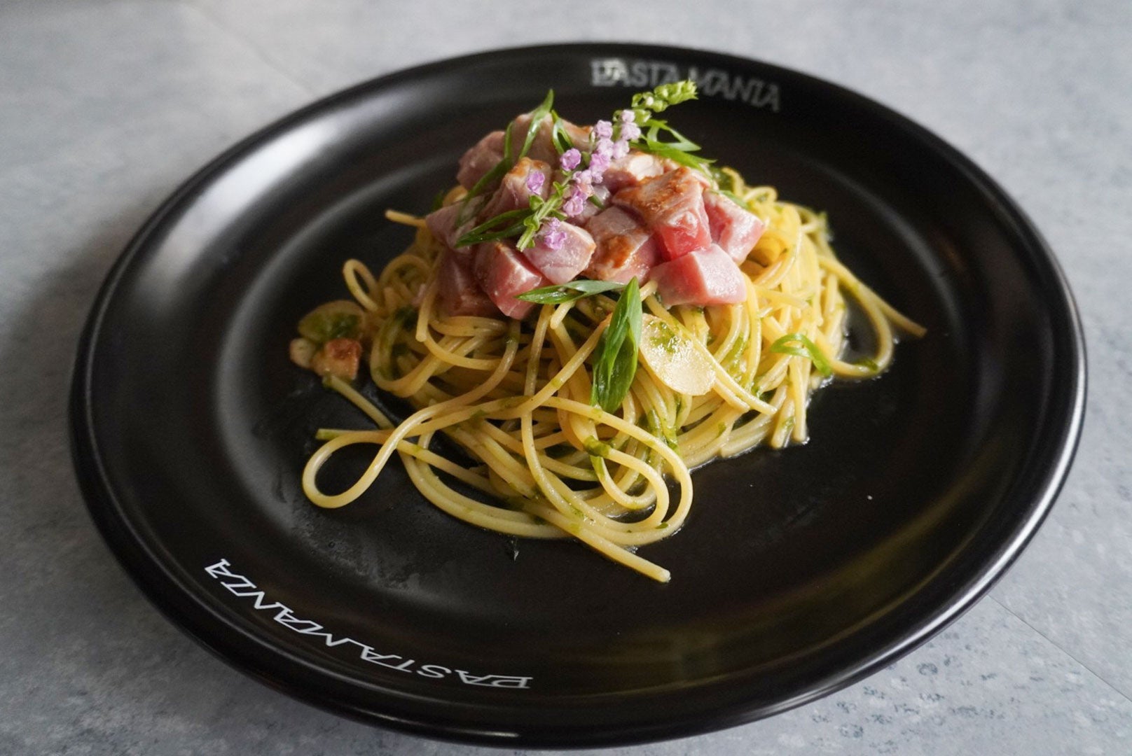 10月10日から2店舗同時スタートする今回のメニューは、現在、新栄本店で提供している「パスタ懐石」をもとに、パスタ専門店として『日本の食文化をパスタで表現していきたい』というシェフの想いから誕生しました。日本酒を取り入れることで味にまろやかさが増し、日本人の好みにより近い味わいに仕上げています。さらに、日本の代表的な食材「本マグロ」を採用。パスタと1番合う状態で提供するために調味料にもこだわり、三河地方で醸造された醤油や味醂を使用しています。最後にマグロを炙ることによって香ばしさが加わり、見た目の華やかさもプラスされ、食欲の秋にふさわしい贅沢な1皿が完成しました。和の繊細な味わいとイタリアンの調理技術が織りなす、パスタマニアでしか味わえない特別な一皿をご堪能ください。