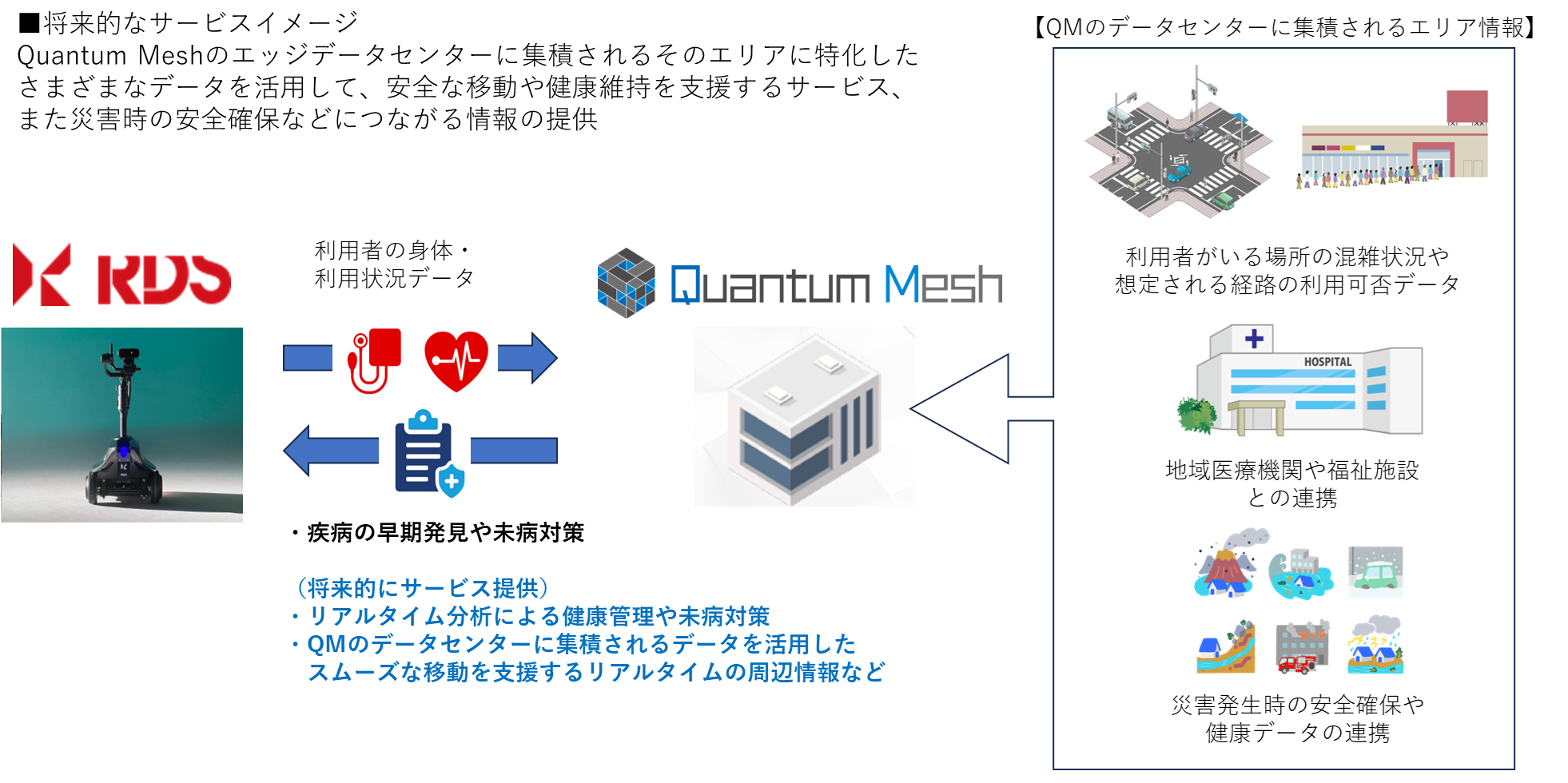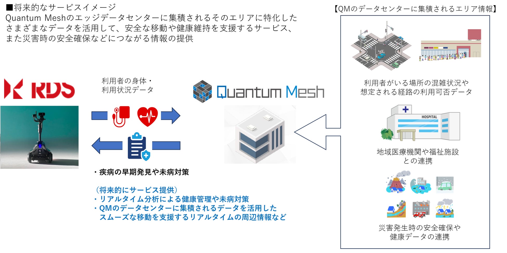 膨大なデータが「情報資産」として現代社会を支え、人々の日常生活に活用される時代が到来しました。しかし、私たち一人ひとりの個人情報を安全かつ信頼性の高い環境で管理することは、これからの社会における喫緊の課題です。Quantum Mesh は、次世代の超高度情報化社会に必要な情報処理インフラとして、セキュアで効率的なエッジデータセンターを構築し、持続可能なデータエコシステムを提供することを目指しています。本提携により、RDSの優れた技術と当社の高度なデータインフラを融合させることで、健康データ活用や未病対策を推進します。私たちは、この取り組みを通じて、AIとIoTがもたらすデジタル変革を支えつつ、地域医療の改善や安心・安全な暮らしの実現に貢献していきます。