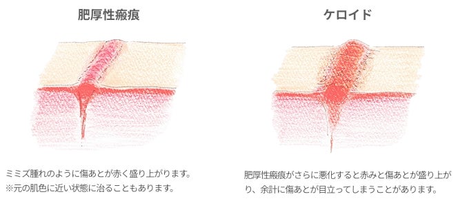 傷トラブルは、物理的刺激や体質によって起こると言われています。傷あとケアが必要な期間に、体質の影響や物理的刺激が傷口に加わると、肥厚性瘢痕、ケロイドという症状になり、ますます赤みや腫れ、痛みなどが広がってしまいます。また、体質によって予防やケアが難しい場合があるので、いかに物理的刺激から傷口を守るかが、帝王切開後の傷あとを目立たなくする重要ポイントです。