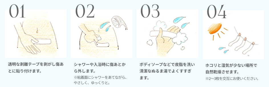 ■POINT03 傷もテープも毎日洗えて清潔にケア