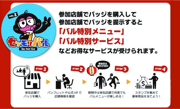 「センモリバル」への参加方法はシンプル。参加店舗でイベント参加証となるバッジを購入するだけ!