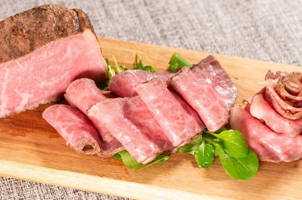 「1品目のニュー・クイック『ローストビーフ』シリーズは、産地の異なる4種展開を予定しています。『黒毛和牛ローストビーフ』は九州と北海道の牛ももを使用し、肉の旨味をダイレクトに感じていただける一品になっています。『豪州産ローストビーフ』はハーブ塩をすり込んでおり、下味がしっかりついているのが特徴です。『トモサンカクローストビーフ』は米国産の牛肉で、厚切りでもやわらかく食べられます。『国産ローストビーフ』は、ホルスタインと黒毛和牛を掛け合わせた交雑牛の外もも肉を使用しました。4種を展開するのは、クリスマスおよび年末年始の期間限定です」と商品の魅力をプレゼンテーションしました。