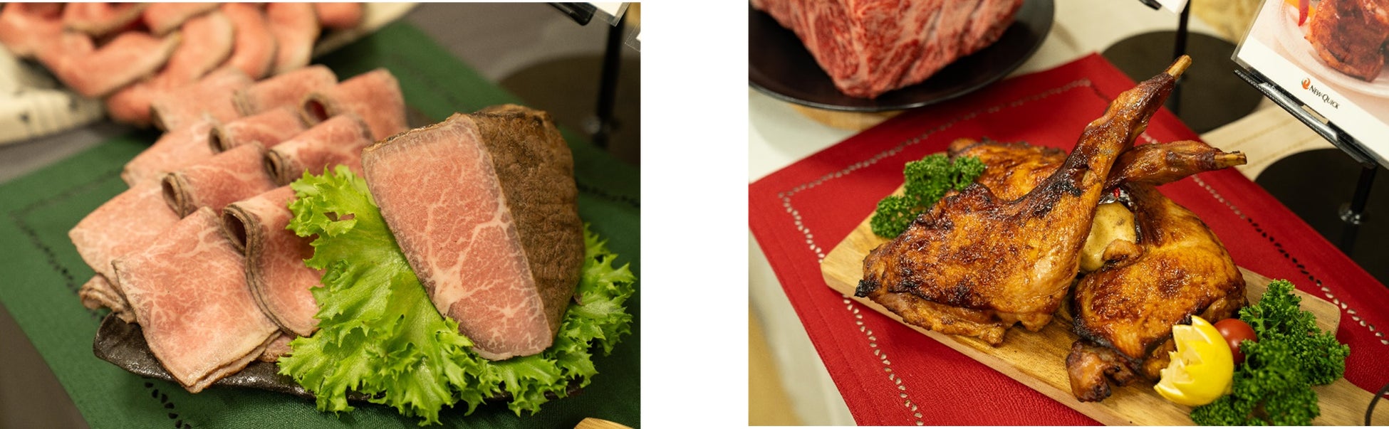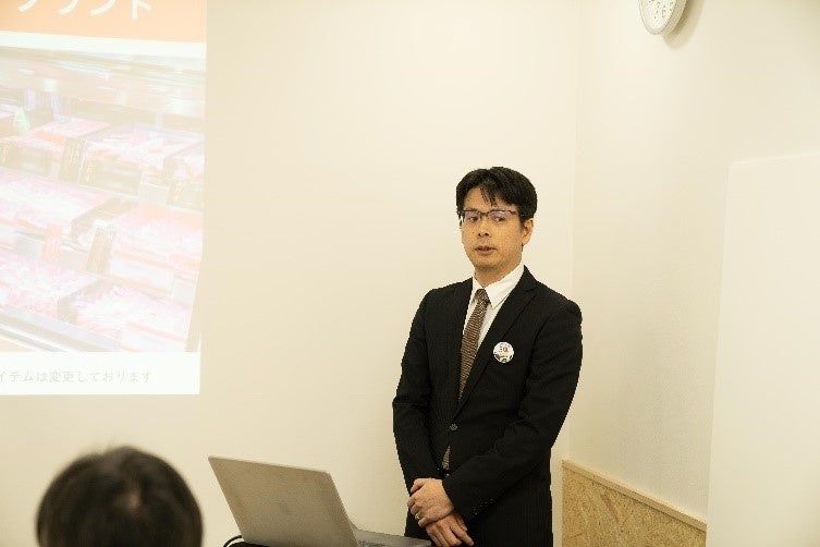 株式会社ニュー・クイック 代表取締役 林浩二より、ニュー・クイックの事業の説明や、展開商品の特徴について説明しました。「ニュー・クイックにとって、2023年は創業50年の記念の年でもあります。感謝の気持ちを込め、「ニュー・クイック 50周年記念大創業祭 肉祭り」の開催やこだわりの原料・産地・製法の国産「きわみ牛」のプライベートブランド化など、ニュー・クイック“美味しい肉の提供”を実現するための取組みを積極的に行ってまいりました。そしてその取り組みを支えるものとして、ニュー・クイックの強みとしてニュー・クイックの「指定農場」と「鮮度」に徹底的にこだわっています」と、プレゼンテーションしました。
