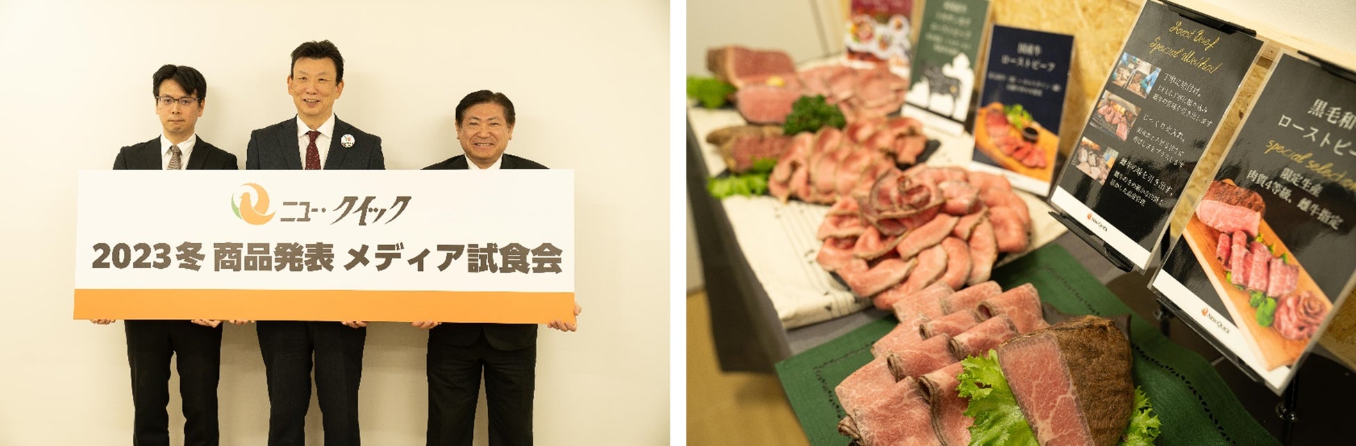 創業50年を迎えた老舗肉屋ニュー・クイックのあり方やクリスマス商品や年末年始にピッタリの『ローストビーフ』シリーズや期間限定商品『チキンレッグ』の発売を発表