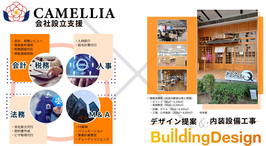 オフィスや店舗の移転、内装・設備工事分野を手掛けるビルディングデザイン株式会社(代表取締役:鷲見 好憲)は、フィリピンにおける主に日系企業を対象とした総合コンサルティング企業である株式会社カメリアコンサルティング(代表取締役社長:日比野 和樹)との間で、業務提携を締結しました。