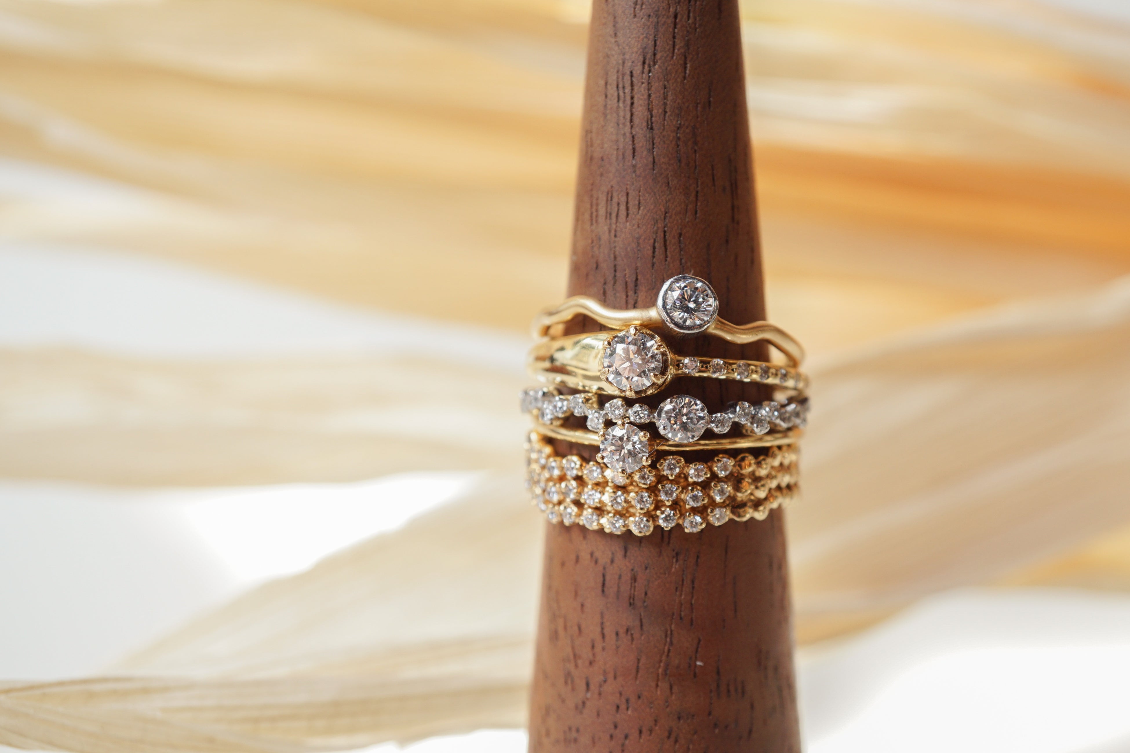 ブライダルコレクション以外のリングをマリッジリングやエンゲージメントリングと重ねてアレンジを楽しむのもおすすめです。