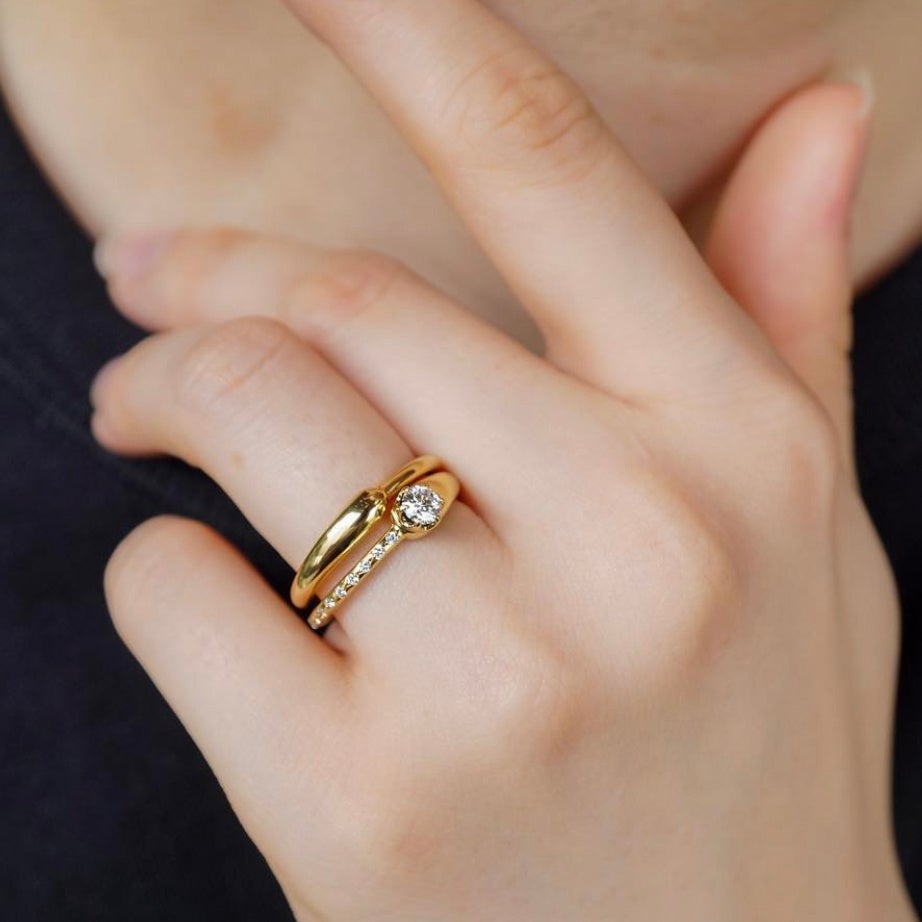 エンゲージメントリングとマリッジリングのレイヤードは特別な時を演出します。
