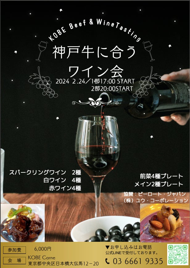 【神戸牛に合うワイン会】ご予約は電話03−6661−9335 または公式LINEから